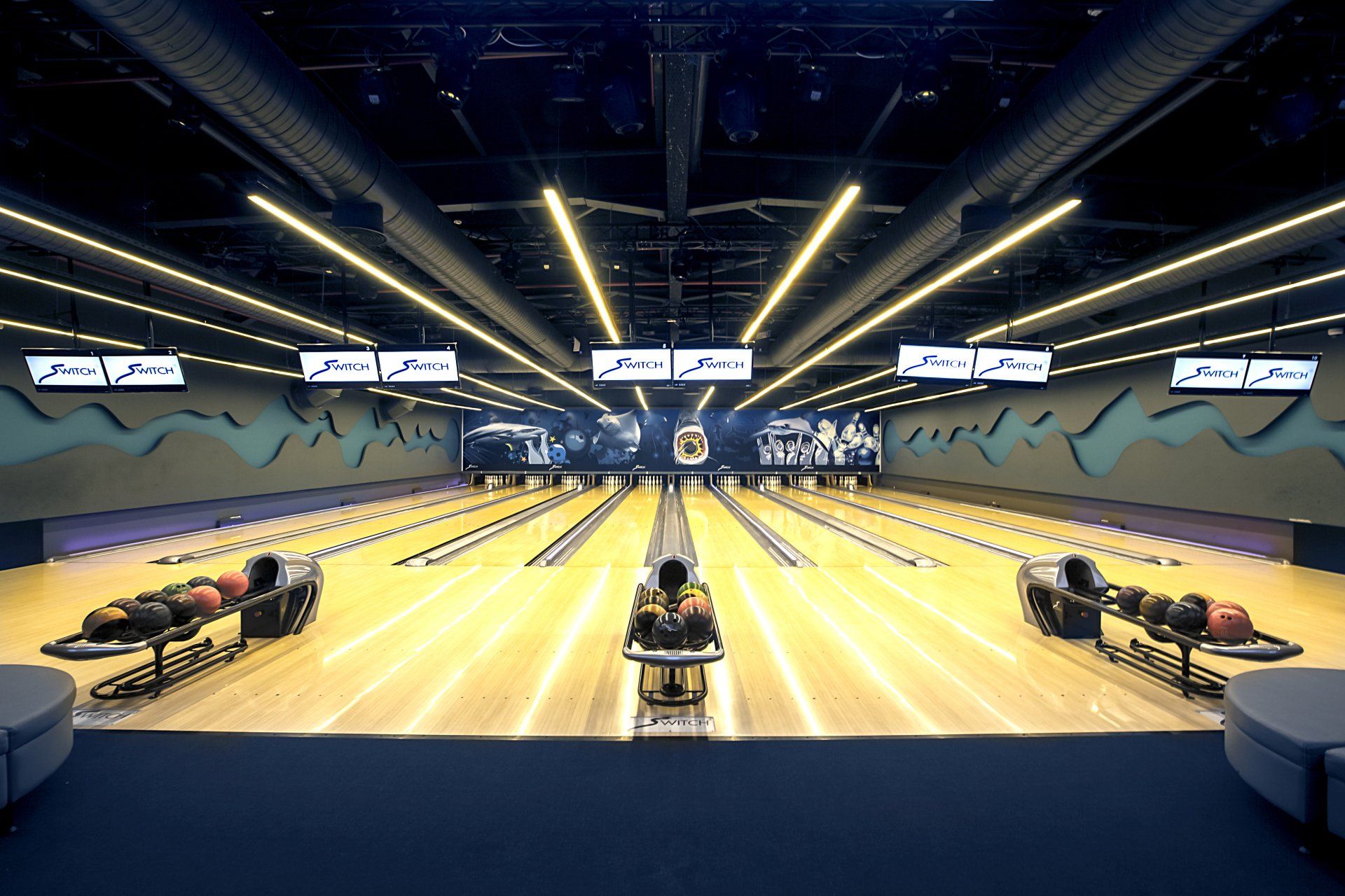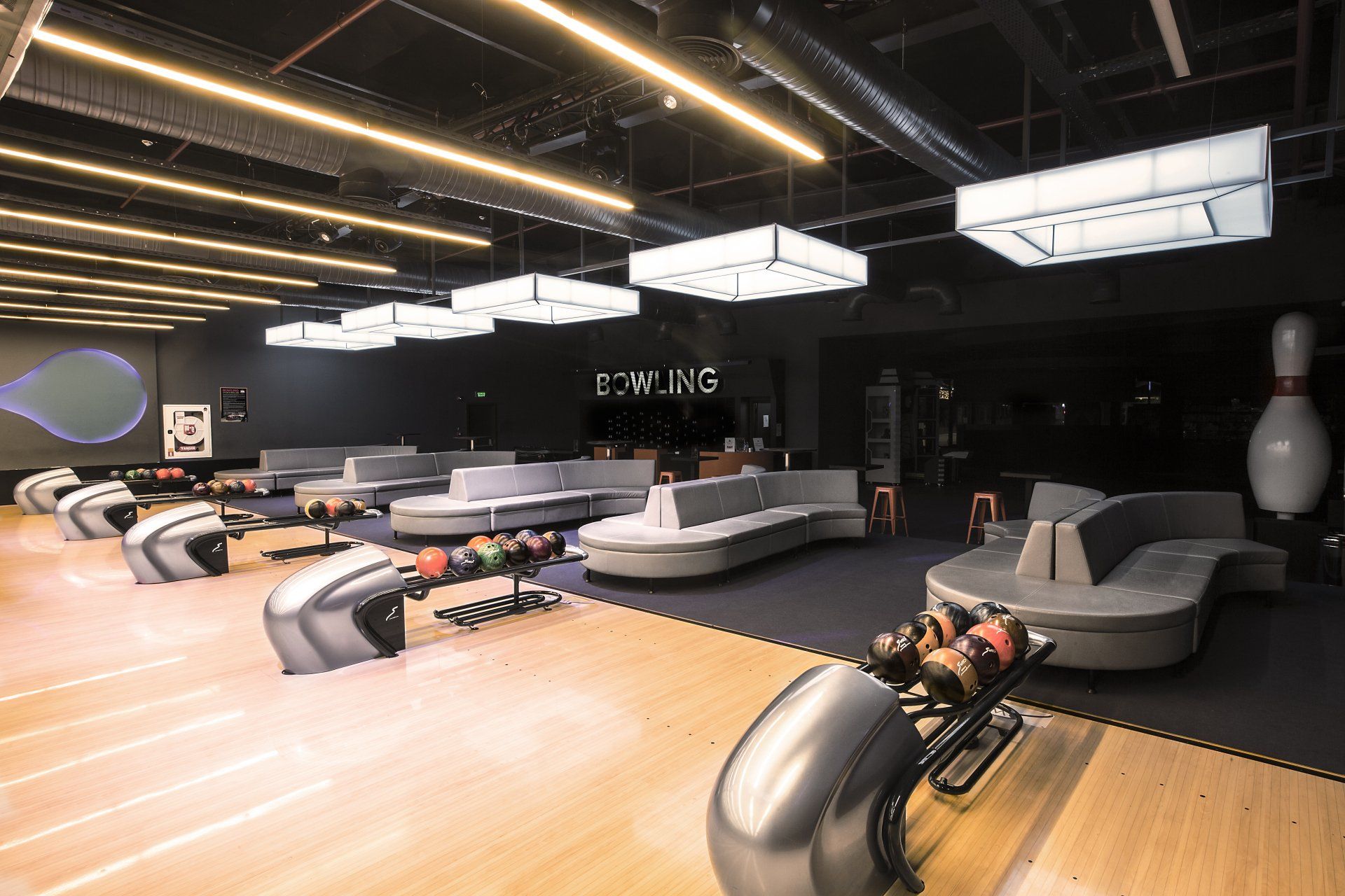 Via Entertainment, which has an area of 4000 m2, offers a 10 lane bowling experience. The very modern and elite design with Switch® Bowling equipment and seating groups, designed by the Italian design giant Pininfarina, lends a great atmosphere to the players.